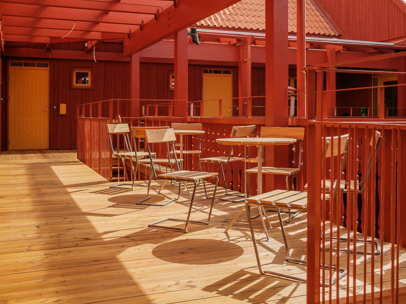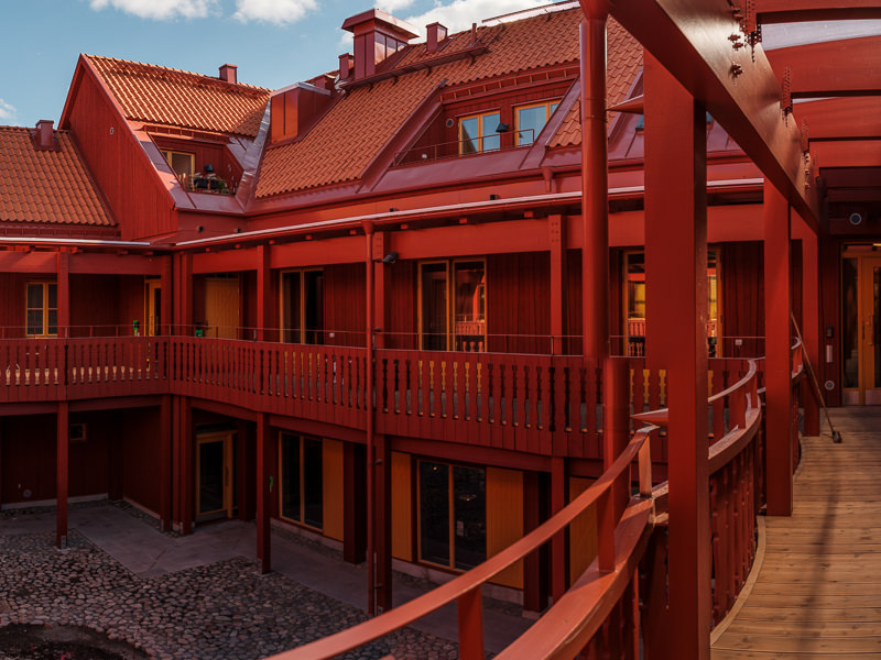 Sedan den tragiska branden 2015 har en modern byggnad som smälter in på ett naturligt sätt i den gamla träbebyggelsen uppförts på fastigheten.
