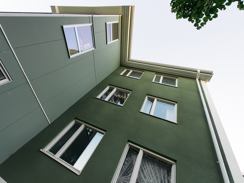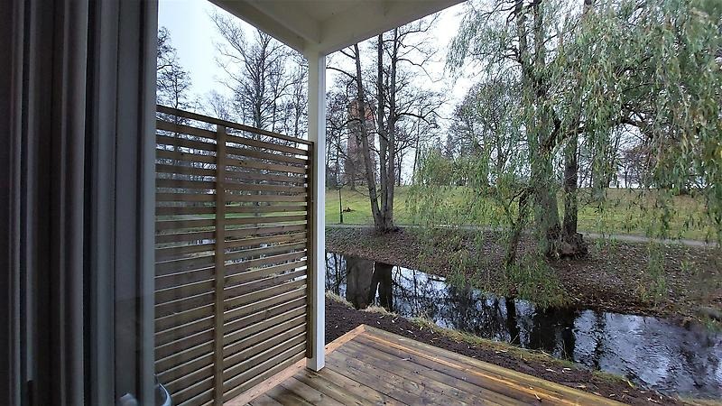 Glada barnskratt hörs från Norrtullskolans skolgård på andra sidan Stockholmsvägen. Men på Pontonens egna innergård är det stilla. De reveterade husen målade i behagliga grå och gröna toner, bildar ett skyddande L mot vinden och omvärlden. Trevliga entréer smälter in i husens arkitektur. Små fina lägenheter med balkong. Gångavstånd till centrum.