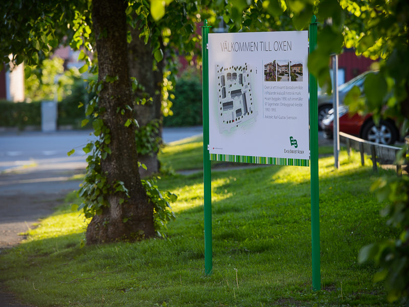 I forna tider var Oxbacken en stor och viktig handelsplats. I dag ligger ett trivsamt bostadsområde i tilltalande skala på den historiska marken. Från rymlig balkong, uteplats eller trevlig loftgång kan man njuta av den gröna gården med smala gångvägar, kantade av körsbärsträd och syrener. I två- och trevåningshusen finns allt från etagelägenheter till moderna ettor. Vissa av husen är utrustade med hiss och många av lägenheterna har en egen liten tvättstuga.