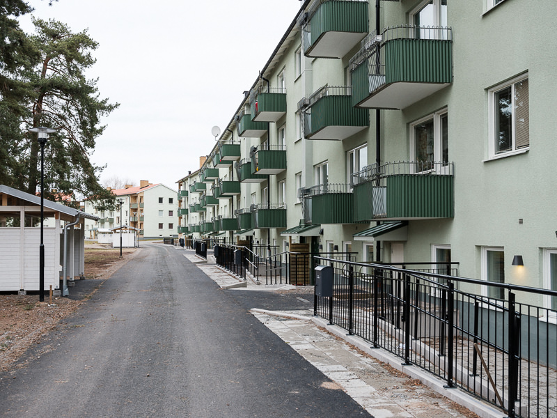 Ett av Eksjöbostäders största bostadsområden som nu genomgår en omfattande yttre renovering. Förutom tak- och fasadrenovering får samtliga lägenheter nya fönster och balkongerna glasas in. Gårdsmiljön görs om efter hyresgästernas önskemål i ett unikt och nationellt uppmärksammat pilotprojekt för hyresgästinflytande. Skogen och Höglandssjuket är närmasta grannar och promenaden till centrum är cirka 700 meter.